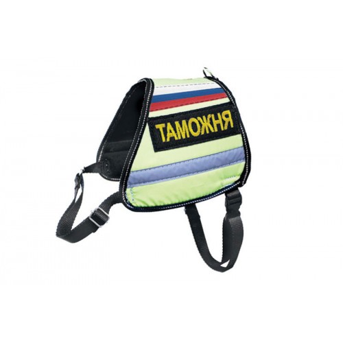 Легкая шлейка с различными опознавательными знаками, есть светоотражающие элементы.